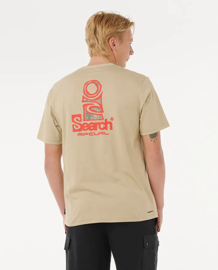 Camiseta Rip Curl Vaporcool Search Stack Tee, realizada en algodón 100% orgánico, de manga corta, con logo de la marca y dibujo estampado en pecho y espalda. De corte recto y diseño clásico.